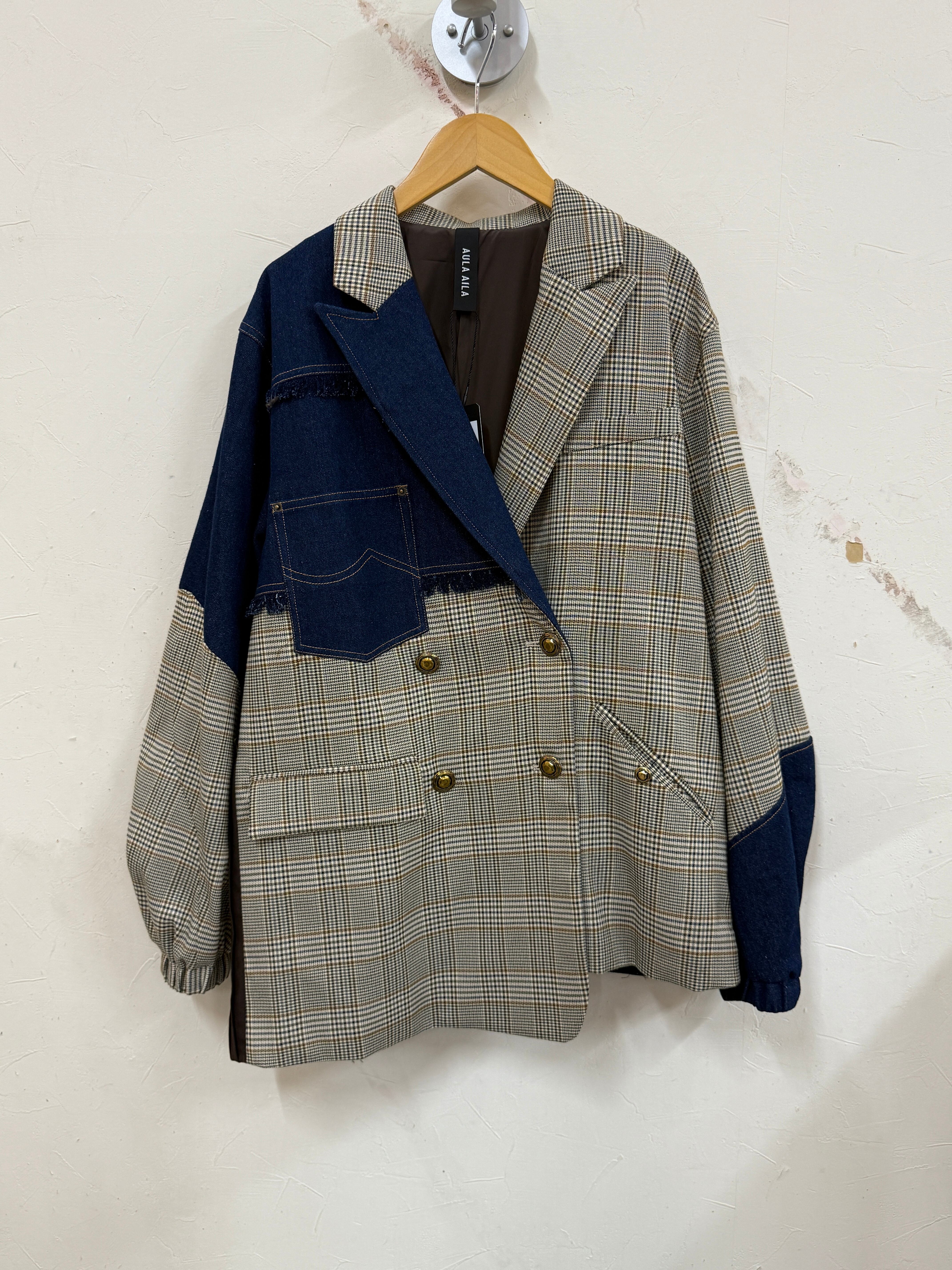 Gジャンとテーラージャケットをリメイクしたようなデザインのジャケットです。