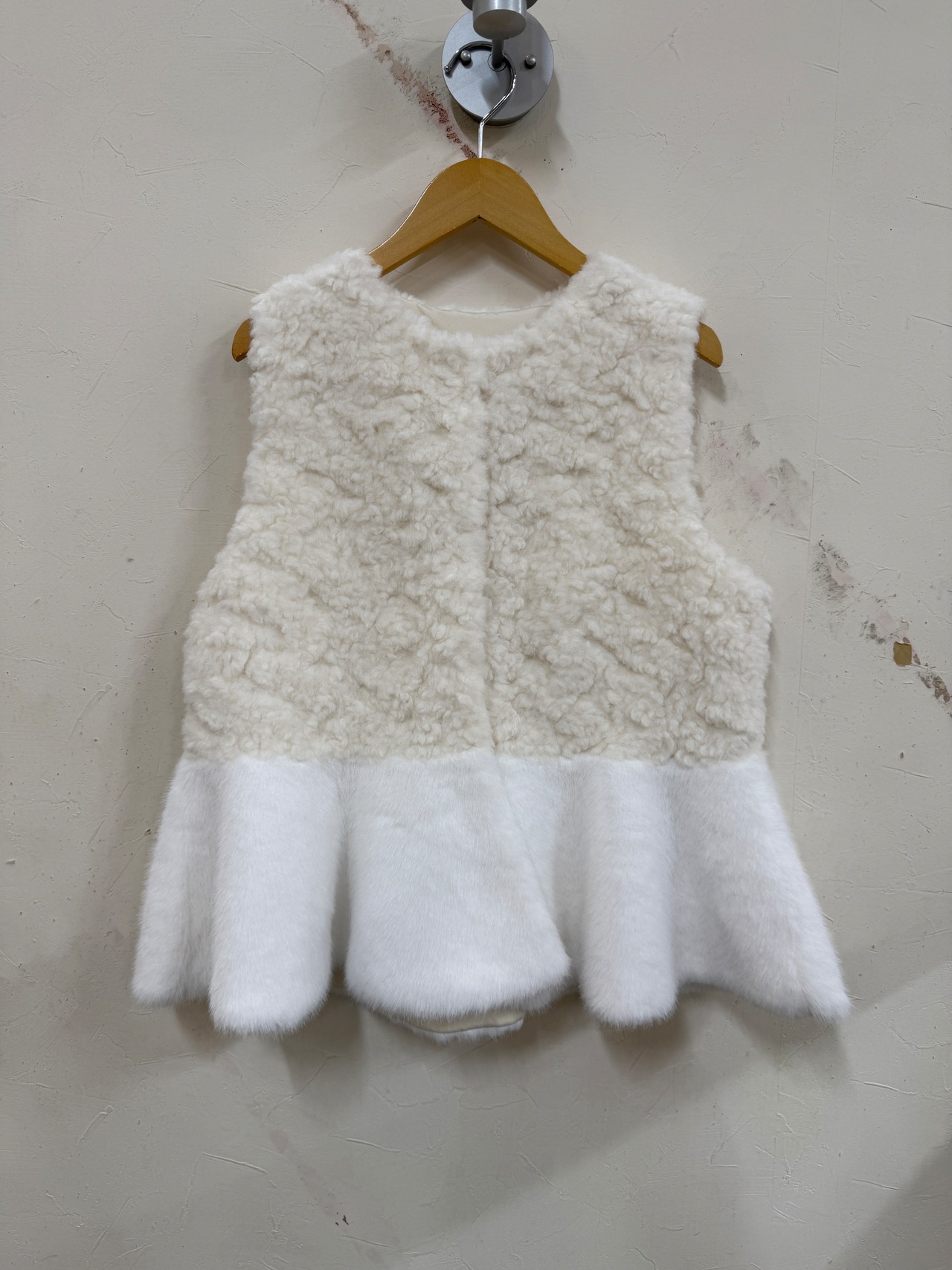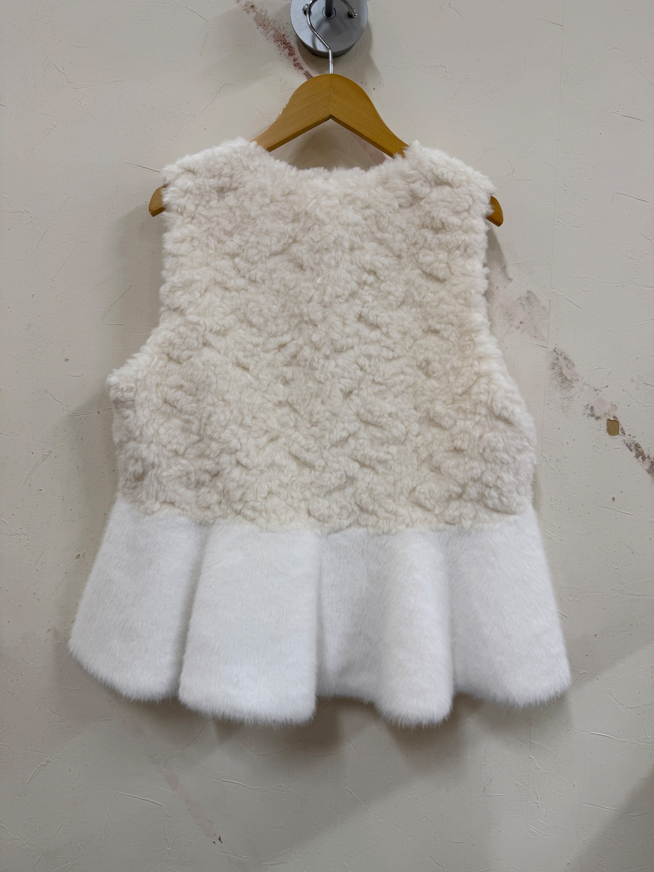 ファーの切り替えが特徴的なベストです。